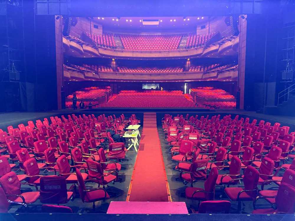 该剧履行导演在1月16日正午的宁波站舞台导览活动中表明,为了照料正常观众席上的观众,站在台口一侧的艺人会随机调整他们的身姿,使我们都有较好的观演体会;舞台两边还设两块侧幕屏,照料斜后方的观众。