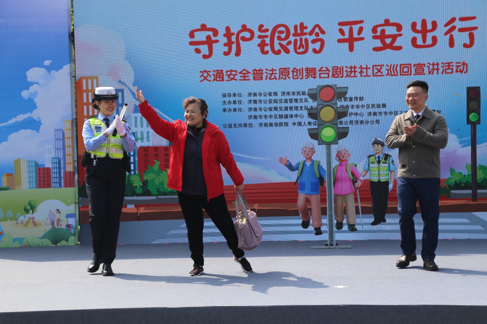 原创舞台剧“穿针引线”,推动交通安全普法入脑入心。4月10日上午,“‘看护银龄 安全出行’交通安全原创舞台剧巡回宣讲活动”发动典礼在济南市市中区群众广场举办。一场独具匠心的原创舞台剧演出,生动别致的普法方法引得市民纷繁停步。